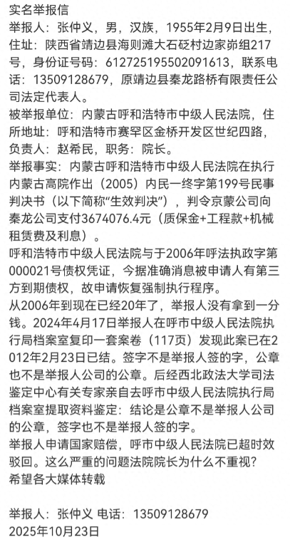 实名举报信:近20年未执行的生效判决被作假结案,国家赔偿被驳回